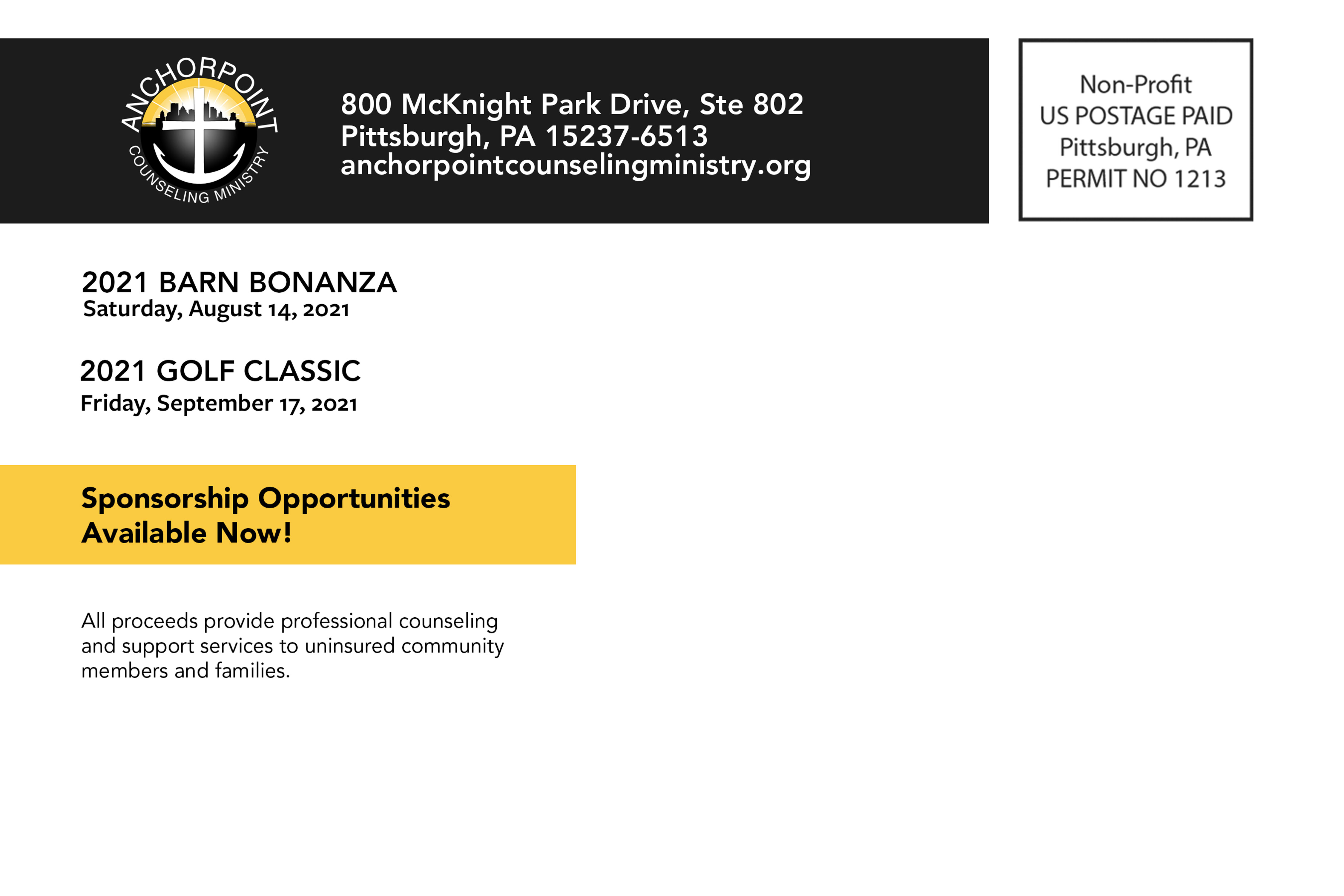Fundraising events are critical to Anchorpoint Counseling’s success, as they thank generous donors and supporters, showcase their impact and raise awareness for mental health issues that are still existing in the community. Below is a series of digital and print collateral I created to provide information and grow excitement for 2021’s series of events. The pieces range from early stages of event production, to invitations and sponsor packets.