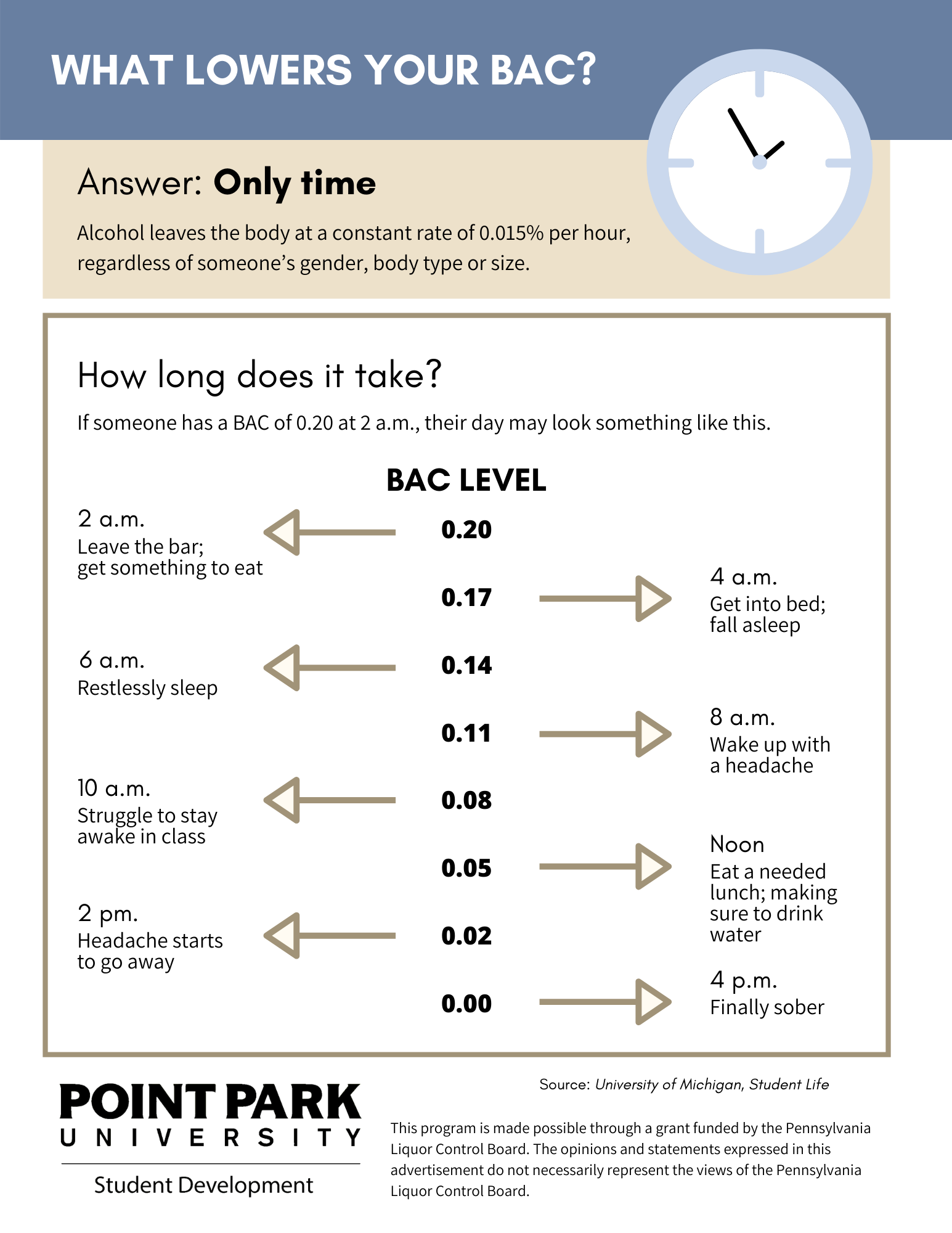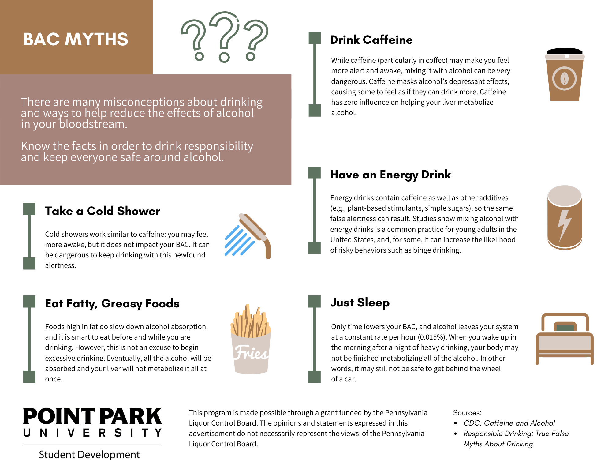 The Center for Student Conduct at Point Park University introduced a series of infographics detailing safe practices fo alcohol consumption and activities. I was responsible for all research, copy writing and designs, while maintaining university brand and guidelines.